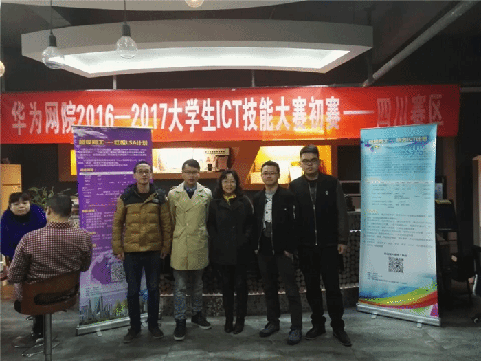 近日,“华为网院大学生ICT大赛—四川赛区”的比赛在成都银河教育中心举行,来自电子科技大学、四川大学、成都信息工程学院、四川理工近40所学校的600余名学生参赛。beat365医学信息工程学院4名同学在指导老师符涛的带领下参加了比赛。经过激烈的角逐,医学信息工程2014级1班的向世川同学获得四川赛区第三名,并与冠亚军组队,代表四川赛区参加在深圳华为总部的的总决赛。