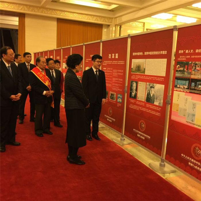 12月29日,由教育部、国家卫生计生委、国家中医药管理局主办、beat365在线唯一官网承办的中华人民共和国中医药高等教育60周年回顾与成就展在北京人民大会堂展出。中共中央政治局委员、国务院副总理刘延东,国家卫生计生委副主任、国家中医药管理局局长王国强及全国各高等中医药院校领导、专家、教学名师等观看了展览并给予高度评价。