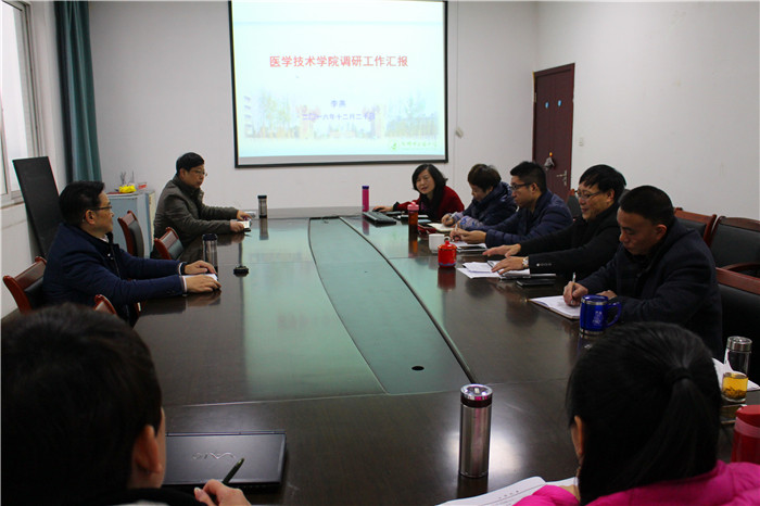 在医学技术学院,刘毅深入了解学院状况,细致询问学院专业设置和各专业内涵以及学院实验教学中心统一管理的具体办法。随后听取了学院院长李燕、党委书记王英文关于学院专业学科建设、党建等工作汇报,学院副院长国锦琳、副书记邓菲对分管工作具体问题的汇报。