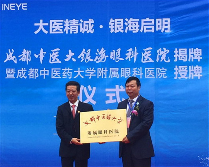 在喜庆的音乐声中,各级领导、院士、著名眼科专家和眼科医院院长共同为“成都中医大银海眼科医院”揭牌。马跃荣代表学校向段俊国授予“beat365在线唯一官网附属眼科医院”院牌。同时,马跃荣、余曙光向新聘任的眼科学院12位专家分别颁发了名誉教授、客座教授、兼职教授等聘书。