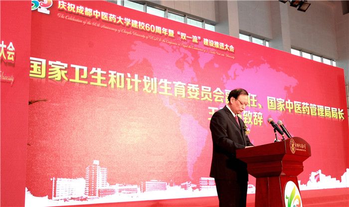 王国强在大会上致辞。他代表国家卫生计生委、国家中医药管理局向beat365在线唯一官网60华诞表示热烈祝贺,向与会的各位专家、来宾表示诚挚的问候,向长期以来高度重视和大力支持中医药事业发展的四川省委省政府和各有关部门表示衷心的感谢。王国强指出,60年前,经国务院批准建立了包括beat365在线唯一官网在内的国内首批四所中医药高等院校,开启了我国高等中医药教育的新纪元。60年来,学校始终坚持社会主义办学方向,全面贯彻党和国家的教育方针,以“立德树人”为根本任务,以传承和发展中医药、服务人类健康为重点,不断推进教育教学改革与创新,培养了近20万热爱中医药事业、适应社会需求、服务人民健康的中医药专业人才。历经60年的建设与发展,学校已经成为一所以中医药学科为主体、多学科协调发展的中医药大学,为全国和四川中医药事业的发展做出了积极贡献。