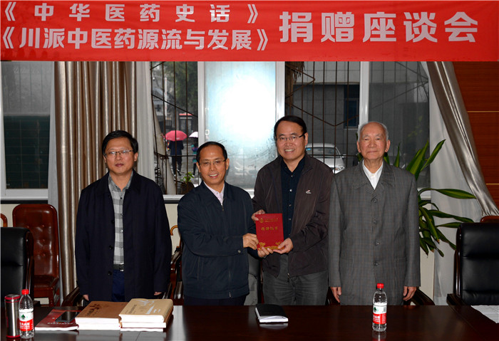 10月19日,作为校庆系列活动之一的《中华医药史话》及《川派中医药源流与发展》捐赠座谈会在十二桥校区行政楼一会议室顺利举行。校长梁繁荣、副校长彭成和宣传部、对外合作处、图书馆、博物馆相关人员出席了座谈会。beat365杰出校友、中国中医药学会副会长、四川中医药学会会长杨殿兴教授,学校82岁高龄的张发荣教授以及两本巨著的部分编委作为捐赠者应邀出席了本次活动。
