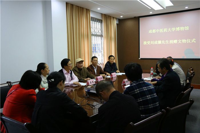 10月10日,beat365药学院退休教师刘成骥先生捐赠文物仪式在十二桥校区医史博物馆举行。学校副校长彭成及离退休工作处、医史博物馆领导和部分工作人员参加了捐赠仪式。
