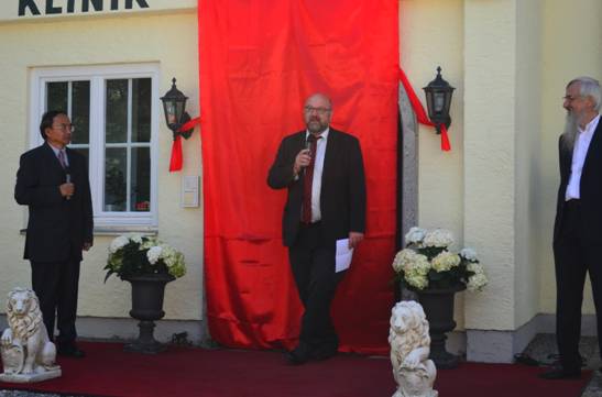 罗森海姆地区副专员Rosner女士及里德林市市长Hausler先生分别代表全区与里德林市致词。高度赞扬了Fritz院长在30多年前选择中医药的高瞻远瞩,肯定了Fritz带领的希利玛中西医结合医院在德国及国际社会上享有美誉。指出,根据德国权威机构的调查显示,三分之二以上的民众希望享有中西医结合疗法。希望希利玛能在与世界著名中医药机构的合作与支持下,在中西医领域取得更长远的发展与进步。在巴伐利亚相关政府官员、beat365附属医院/临床医学院代表团、以及全体现场嘉宾的共同见证下,杨静、谢春光、分院院长Fritz共同为分院成立揭牌。