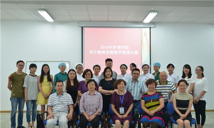 6月16日下午,护理学院举行2016年青年教师实践教学比赛,学院5个教研室推荐的9名优秀青年教师参加比赛。学校教学督导专家组组长傅春华、校级教学督导专家宋永慧、学校附属医院护理部主任王芳、第二临床医学院副教授冉启志、护理学院教学督导专家吴宗平应邀担任评委;比赛特设5名学生评委。比赛由护理学院副院长高静主持。学院领导、全体教师及研究生到场观摩比赛。内儿护理教研室杨静获比赛第一名。