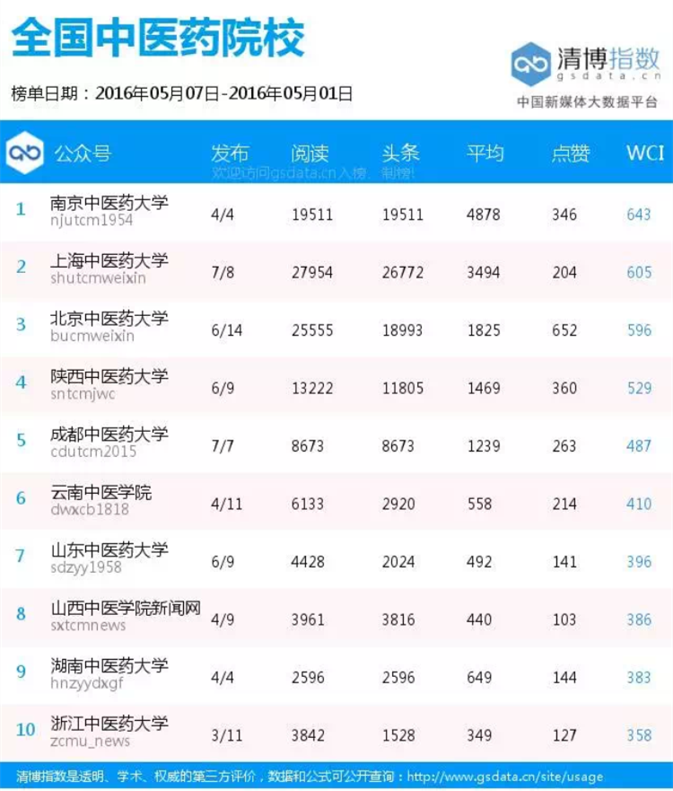 学校官方微信在全国中医药院校周榜中位居前五名(5.1—5.14) 发布时间:2016-05-18 09:47:00 浏览次数: 次 【字体:小 大】 (编辑/任翔) 【打印正文】 上一条:学校官方微信在全国中医药院校周榜中位居前五名(5.1—5.14) 下一条:学校官方微博在医院院校微博影响力周榜中稳居首位(2016.4.17—5.07)