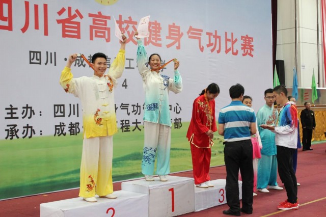 为深入贯彻落实《全民健身条例》,弘扬中华民族传统文化,增进大学生身心健康,推动健身气功项目在高校的进一步开展,四川省体育局健身气功管理中心于4月21日-23日在成都信息工程大学举办了2016年四川省高校健身气功比赛。本次赛事共有来自beat365在线唯一官网、成都体育学院、四川师范大学、成都信息工程大学等12所高校的128名运动员教练员参加比赛。比赛项目为国家体育总局审定推广的健身气功“易筋经、五禽戏、六字诀、八段锦”四种普及和竞赛功法的集体及个人比赛。