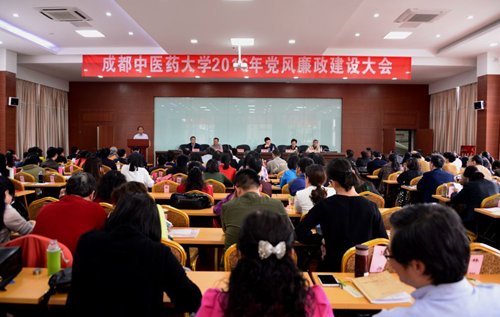 4月15日下午,学校2016年党风廉政大会在十二桥图书馆报告厅举行。四川省纪委第一纪检监察室副主任邱晓到会指导工作,学校校领导、党委委员、纪委委员、处级干部、科级干部,教职工党支部书记,各民主党派负责人,无党派代表人士、各级人大代表、政协委员,党风廉政特邀监督员代表,教代会/工会代表,离退休教职工代表,学生代表,共计247人参加会议。会议由党委常委、副校长余曙光主持。会议的主题是:以党章为遵循、全面从严治党、保障再次腾飞。会议的主要任务是深入学习党的十八大、十八届历次全会和习近平总书记系列重要讲话精神,全面贯彻十八届中纪委六次全会、全国教育系统党风廉政建设视频会、省纪委五次全会以及全省教育系统党风廉政建设视频会议的决策部署,落实全面从严治党要求,总结学校2015年党风廉政建设与反腐败工作,研究部署今年的具体工作任务。