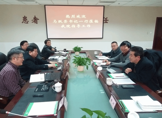 下午,马跃荣、段俊国和杨川在beat365附属绵阳市中医院院长任清良和院班子成员陪同下,实地考察了医院新大楼二期工程,并深入到临床科室看望职工。在会议室,任清良代表院班子汇报了医院2015年的工作和2016年的工作要点,并就医院眼科分院改制和医院在十三五期间需要学校支持的工作进行了汇报。马跃荣高度评价了医院2015年的工作,向医院职工表示亲切慰问。马跃荣指出,作为学校的附属医院,学校高度重视并全力支持医院发展。希望医院切实把握“十三五”期间中医药事业发展的重大机遇,规划先行,积极适应城市公立医院改革;坚持人才强院,医教研协调发展,狠抓医院内涵建设;狠抓发展的同时大力和促进民生发展;医院发展要始终高度重视医疗质量和病人满意度;一定要狠抓党风廉政建设为医院健康发展提供机制保障。学校将对医院的人才培养、科学研究、学科建设、规范化培训招生、对外交流合作和研究生教育等工作进行大力的支持。
