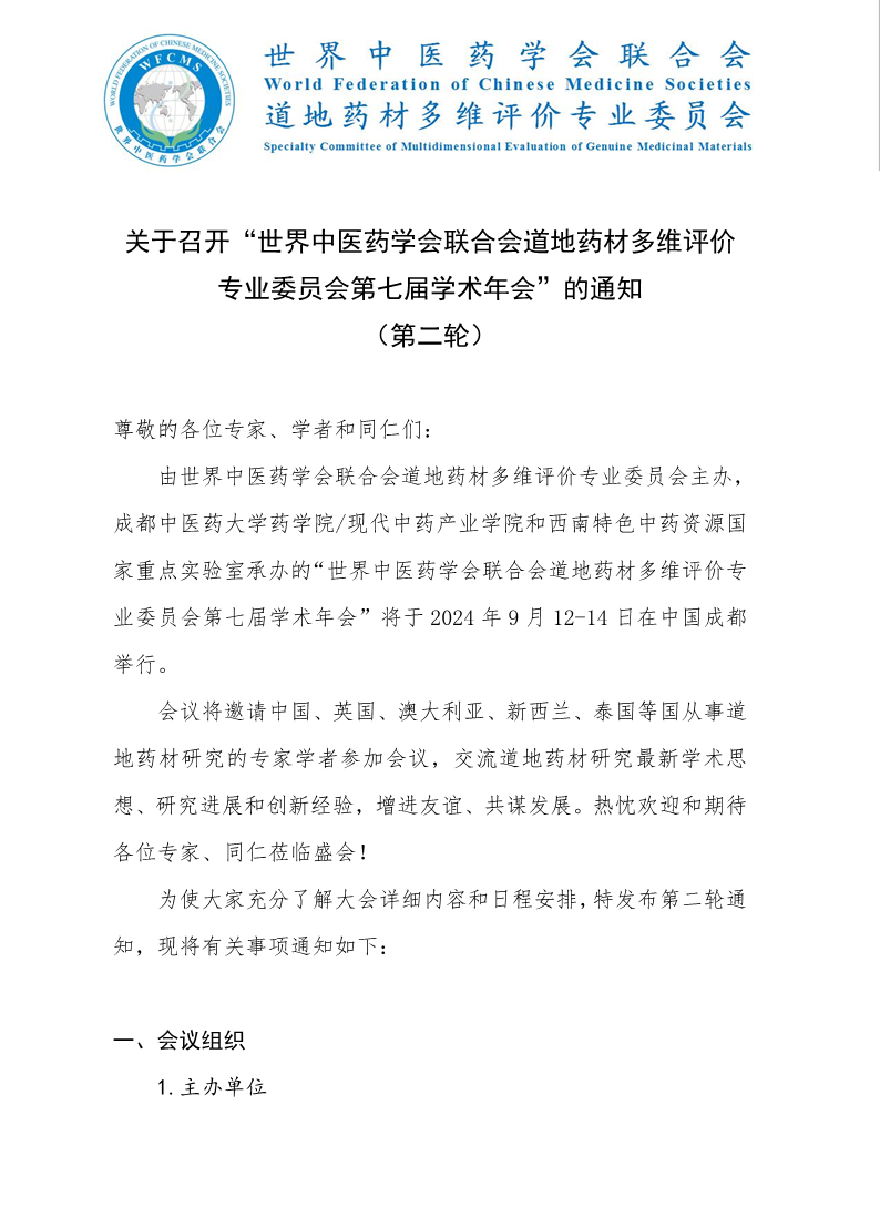 会议电子邀请函地址(点击访问):世界中医药学会联合会道地药材多维评价专业委员会 (eqxiu.com)