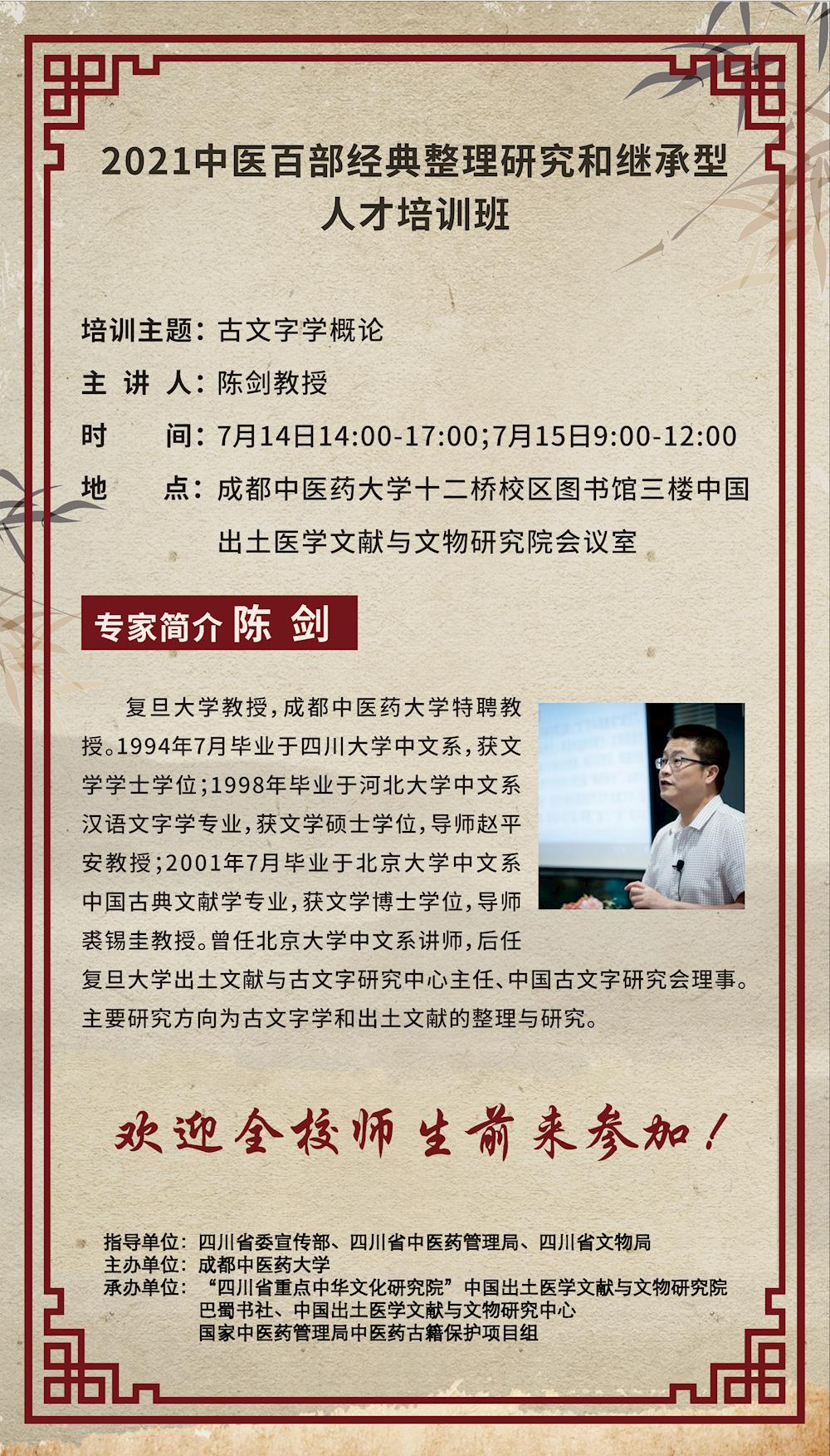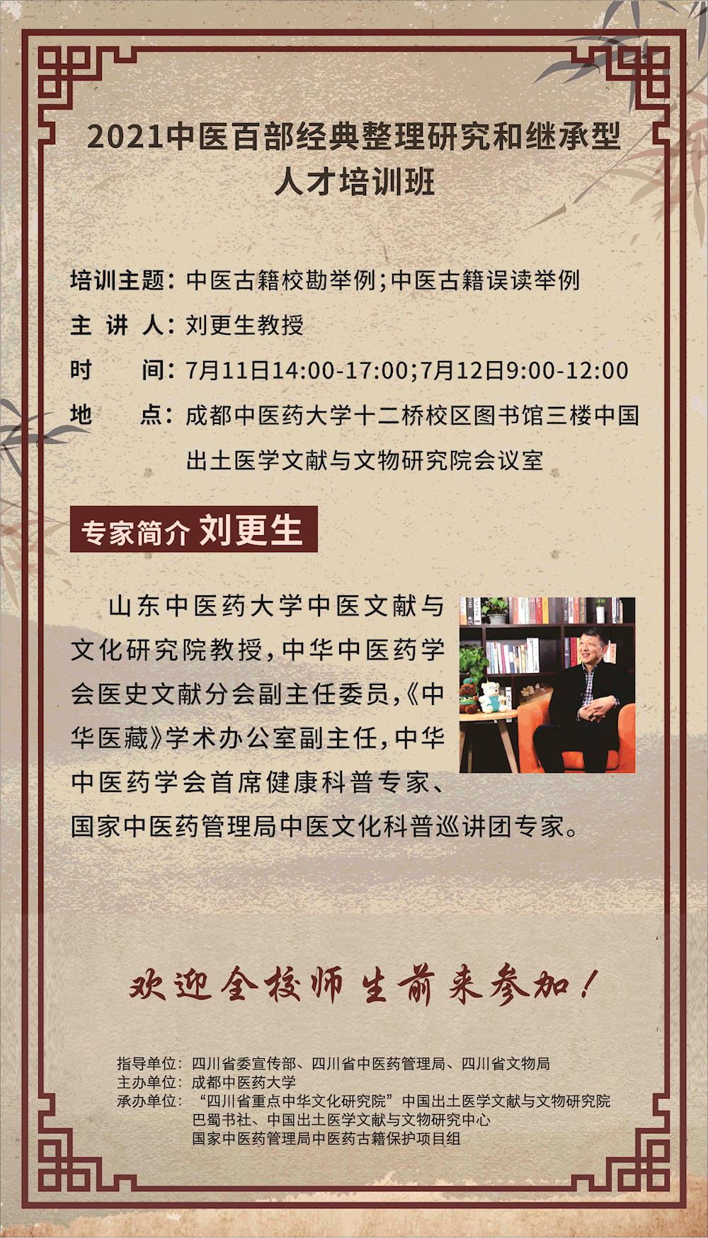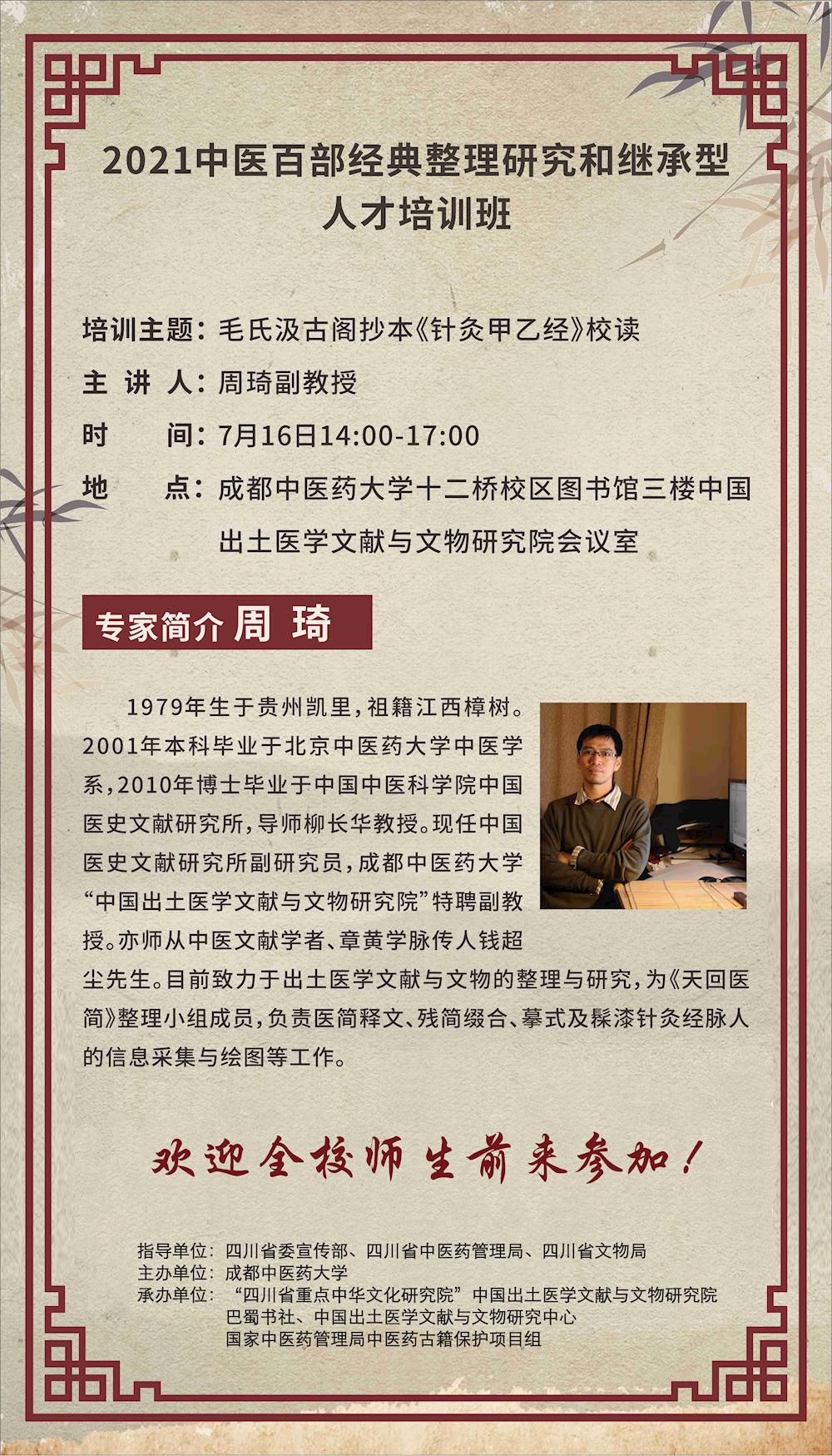2021中医百部经典整理研究和继承型人才培训班开班通知 发布时间:2021-07-12 09:15:58 浏览次数: 次 【字体:小 大】 【打印正文】 上一条:西南特色中药资源国家重点实验室彭成团队在《Journal of Hazardous Materials》杂志发表姜黄素相关研究成果 下一条:《中国卫生事业管理》荣获首届西牛奖之“十佳优秀中文期刊”