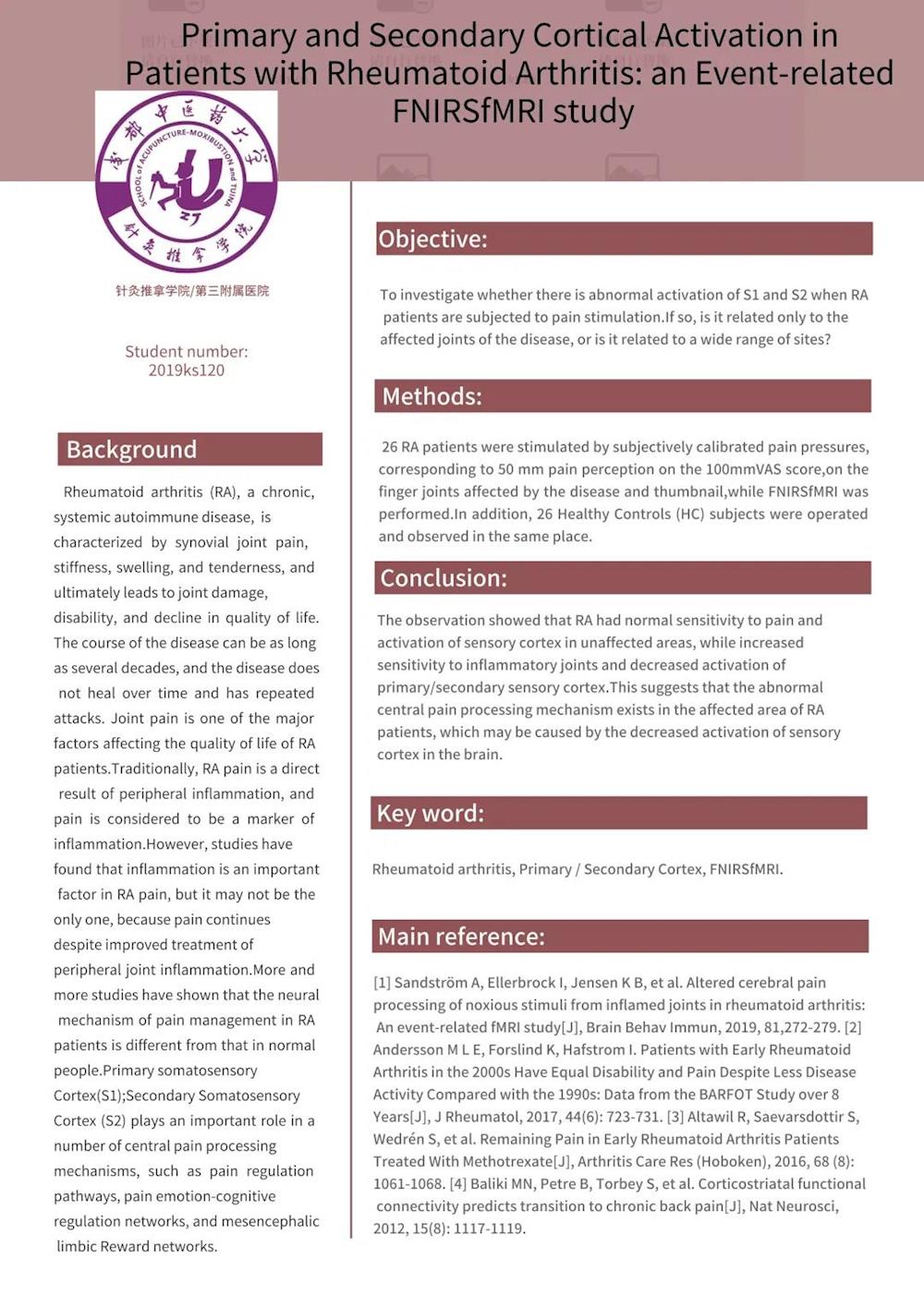 针灸推拿学院/第三附属医院 第二届研究生学术论坛壁报展(硕士组) 发布时间:2021-01-11 16:55:51 浏览次数: 次 【字体:小 大】 针灸推拿学院/第三附属医院 第二届研究生学术论坛在今天正式开始!论坛分为壁报展示和学术汇报两部分。在经过近一个月的投稿征集、专家评审后,评选出10名博士、9名硕士进入壁报展示环节。以下就是他们制作的壁报:硕士组王福民 李晨玉 叶坤 张淋麟 黄琴 李捷 程斌 陶偲钰 王玥梅 【打印正文】 上一条:针灸推拿学院/第三附属医院 第二届研究生学术论坛壁报展(博士组) 下一条:《beat365在线唯一官网学报》荣获 “2020年度中国高校优秀科技期刊”称号