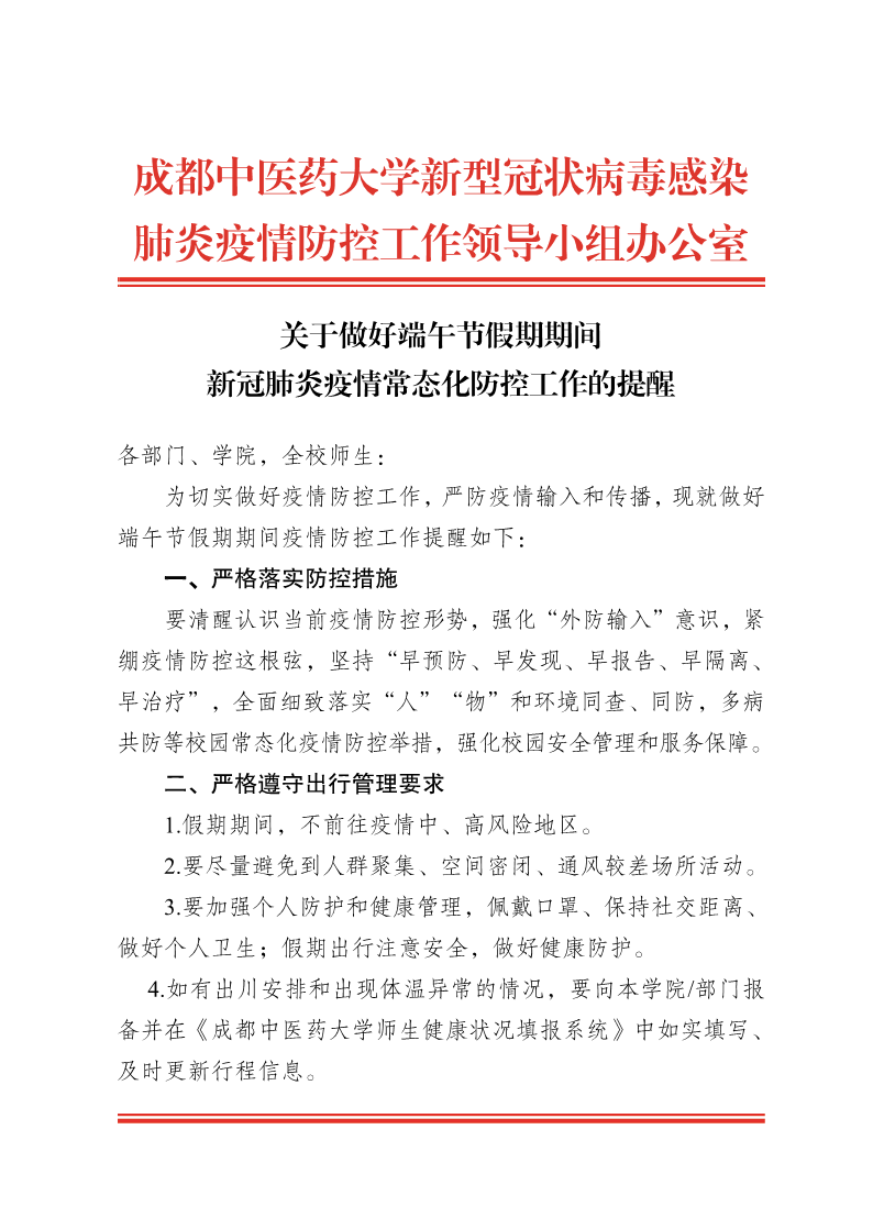 关于做好端午节假期期间疫情防控工作的提醒 发布时间:2021-06-11 14:24:47 浏览次数: 次 【字体:小 大】 【打印正文】 上一条:关于启动《beat365在线唯一官网章程》修订工作的公告 下一条:关于2021年端午节放假有关事项的通知