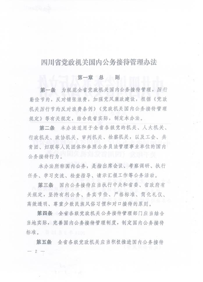 川委办〔2014〕11号-中共四川省委办公厅 四川省人民政府办公厅关于印发《四川省党政机关国内公务接待管理办法》的通知. 发布时间:2014-04-14 15:43:00 浏览次数: 次 【字体:小 大】 【打印正文】 上一条:关于实行校园临时交通管制的通告 下一条:计划财务处办理业务时间