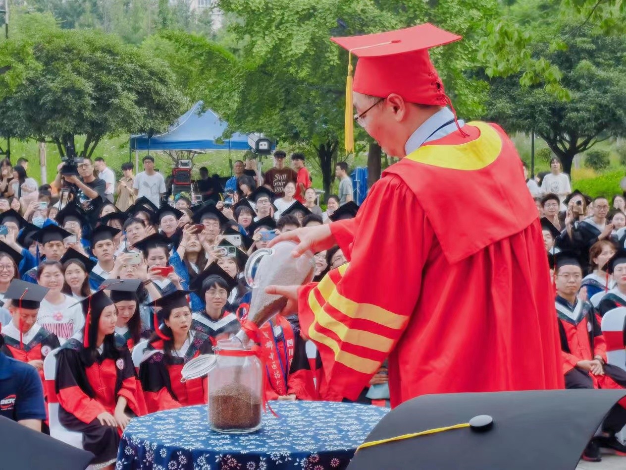 除了博物馆,学校还有国家重点实验室、国家中药种质资源库……前不久举办的毕业典礼上就“药味”十足,校长余曙光将代表2022届毕业学生的远志种子倒入特制的中药种质资源保存瓶,现场封存作为纪念瓶,并交予位于学校内的国家中药种质资源库永久保存。“远志”是一味中药的名字,选择“远志”封存入库,既凸显了中药特色与文化,也取字面蕴含的深远意义,希望同学们志存高远,锐意创新。