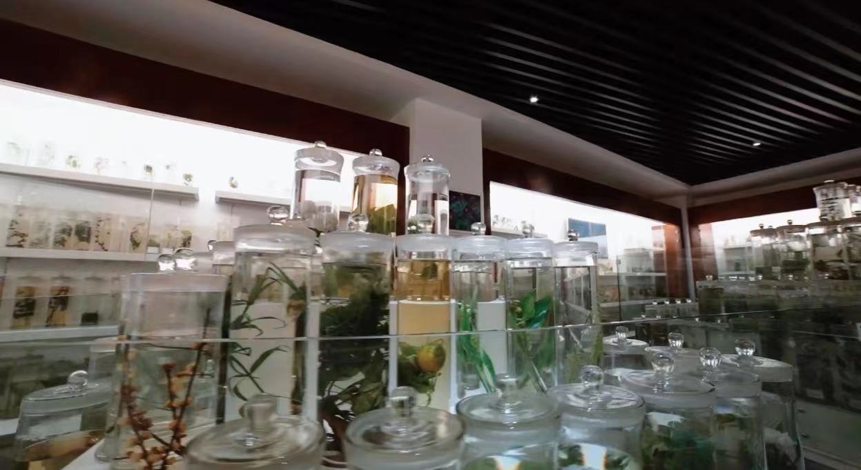 此外,博物馆里还有许多中药标本,并重点收藏了各类罕见标本,如麝香、牛黄、野山参等,以及海龟、海豹、虎骨等大型生物标本。学校特制了一款“保鲜液”,能够让植物保存10到20年,让同学们不出校门就能“识百草”,对药材的形态和功效有最清晰的认识。