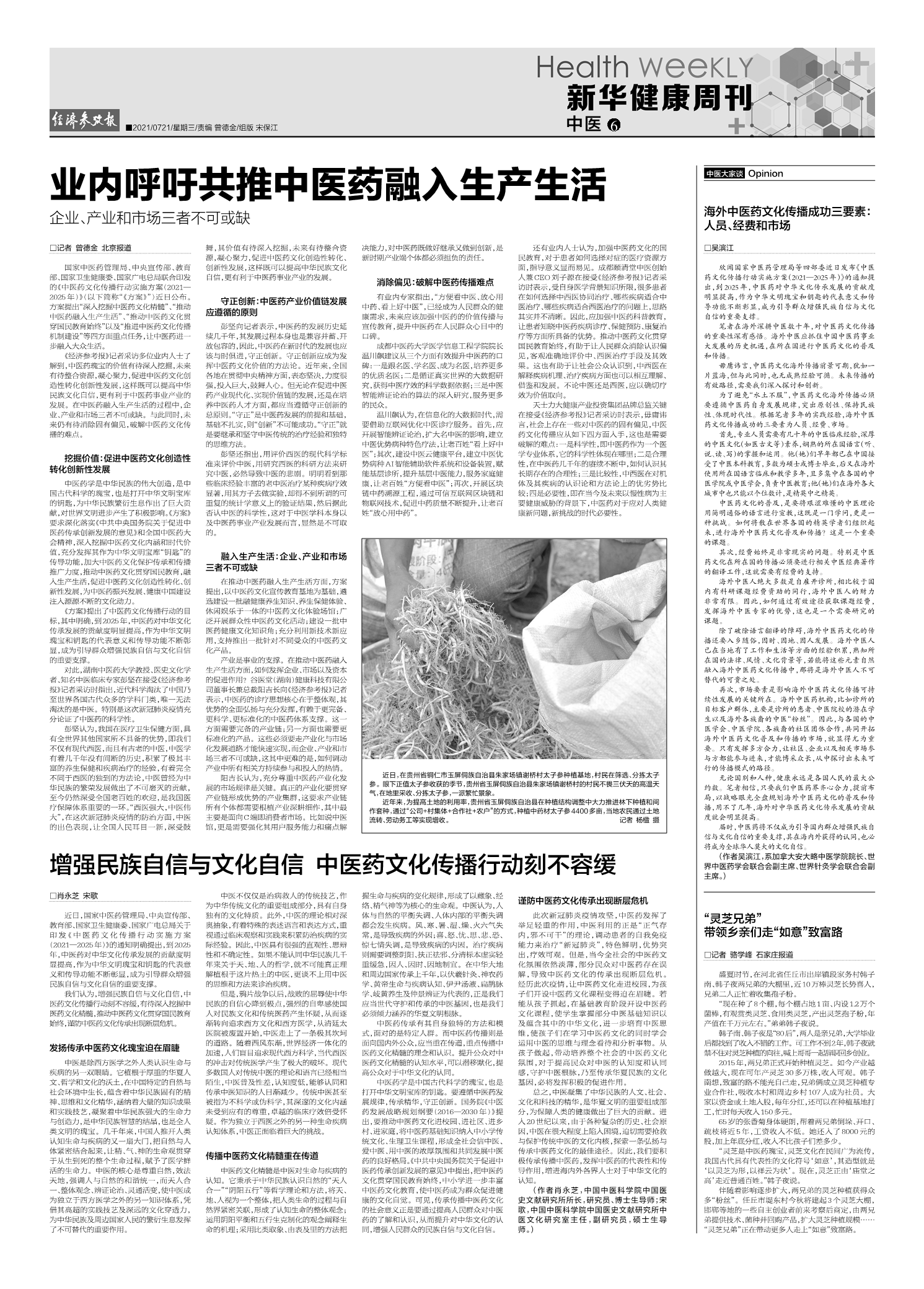 有业内专家指出,“方便看中医、放心用中药、看上好中医”,已经成为人民群众的健康需求,未来应该加强中医药的价值传播与宣传教育,提升中医药在人民群众心目中的口碑。