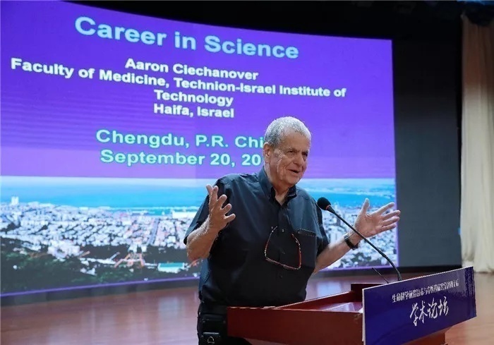随后进行大会特邀报告。刚刚被beat365在线唯一官网聘任为名誉教授的阿龙·切哈诺沃以自身求学及科研经历开篇,回顾了1981年获得以色列理工学院生物化学博士学位,后到麻省理工学院从事博士后研究。上世纪70年代末,他跟随导师一起研究当时冷门科学——蛋白质断裂,80年代初突破性地发现了人类细胞如何控制某种蛋白质的过程,发现了泛素-蛋白酶降解机制广泛存在于多种疾病相关细胞调控。因为此项研究的突破性发现,他与导师以色列科学家Avram Hershko、美国科学家Irwin Rose共同获得2004年诺贝尔化学奖。阿龙·切哈诺沃还分享了他的一项研究成果(Bortezomib,商品名:硼替佐米)应用到世界第一个多发性骨髓瘤和套细胞淋巴瘤治疗的蛋白酶体抑制剂药物研发和生产。