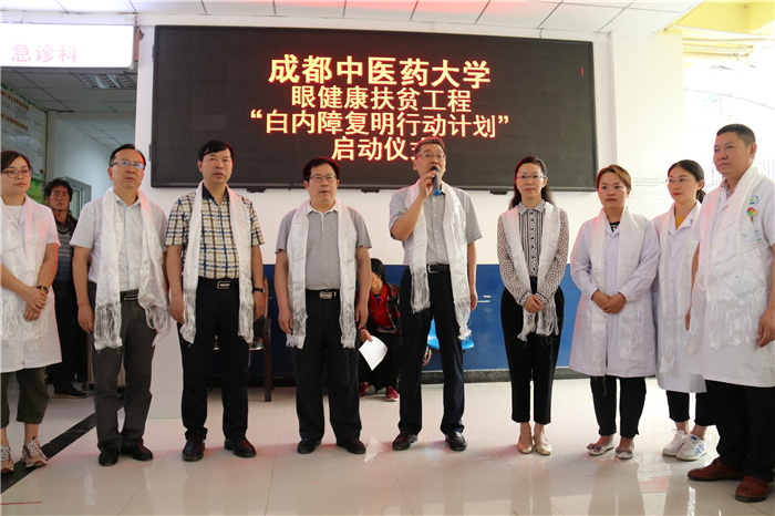 7月9日下午,余曙光一行来到得荣县人民医院,与院方共同举行beat365在线唯一官网眼健康扶贫工程“白内障复明行动计划”启动仪式,看望慰问在医院开展义诊及白内障筛查、手术的beat365在线唯一官网眼科学院/附属眼科医院医护工作者潘学会、陈小凤、尹朔、相波、刘文艳,以及前来就诊的群众。