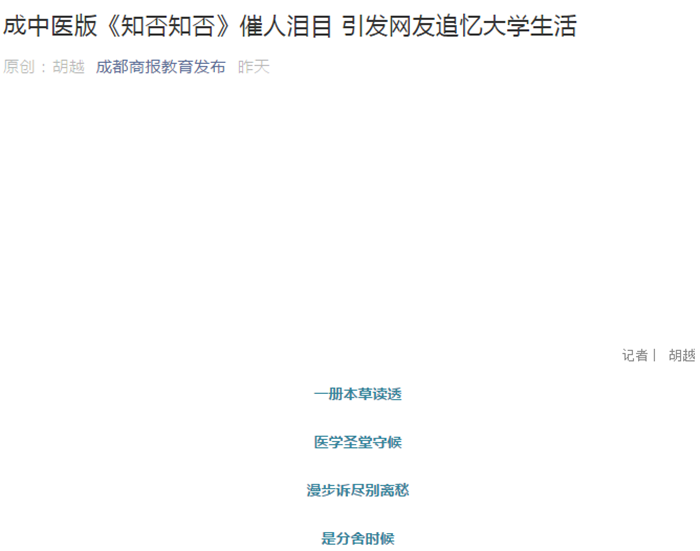 成中医版《知否知否》催人泪目 引发网友追忆大学生活