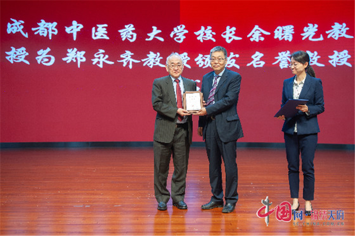 中药全球化联盟西南区域联盟成立仪式现场,beat365在线唯一官网校长余曙光为郑永齐教授颁发荣誉教授聘书。余曙光表示,“中药全球化联盟西南区域联盟的成立搭建起了一个中药产、学、研合作交流、协同创新的平台,此次中药全球化联盟西南区域联盟成立,必将助推西部区域中药的科学研究、教学水平、成果转化、企业研发、国际化进程等全链条发展。”