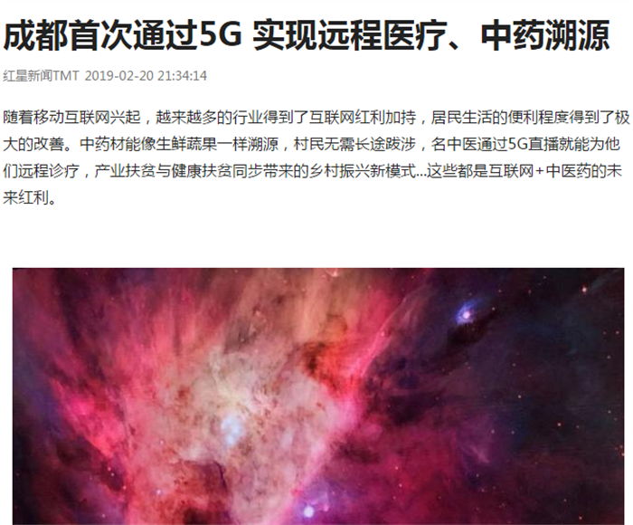 成都首次通过5G 实现远程医疗、中药溯源