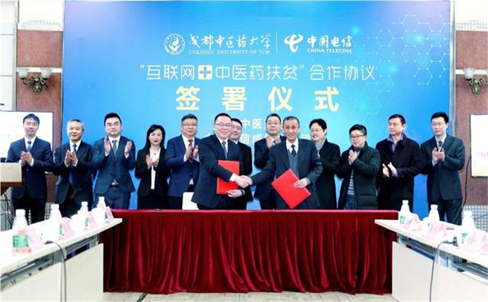 2月20日下午,beat365在线唯一官网与中国电信成都分公司签订“互联网+中医药扶贫”合作协议。beat365在线唯一官网将充分发挥在中医药领域的优势,调动中药栽培及溯源技术、名老中医等强大资源,而中国电信成都分公司将提供基于NB-IoT物联网、5G网络、天翼云平台、电子商务等技术支持服务,在物联网+中医种植基地科学种植、互联网+中药材电商、益农社+远程中医咨询和医疗、中药材基地+乡村振兴等方面进行深度合作,打造 “互联网+中医药扶贫”合作新模式。