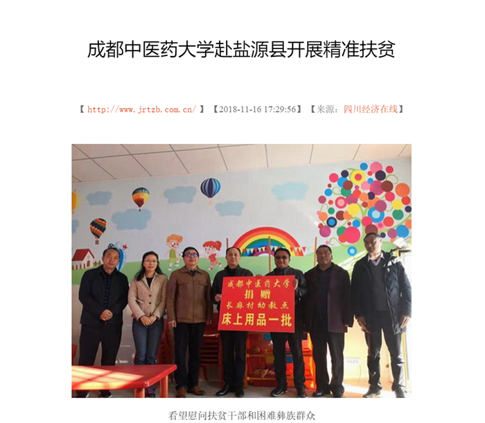 在盐源县开展扶贫工作期间,盐源县委书记邓天友,县委副书记高晓会见了工作组一行。盐源县委副书记曾浪舟,副县长张成武陪同调研。学校党政办公室、学生处、计划财务处、保卫处、针灸推拿学院、管理学院、体育学院、产研院等相关负责同志随同赴盐源县开展扶贫工作。