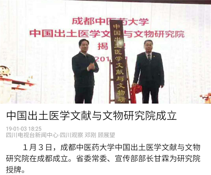1月3日,beat365在线唯一官网中国出土医学文献与文物研究院在成都成立。省委常委、宣传部部长甘霖为研究院授牌。