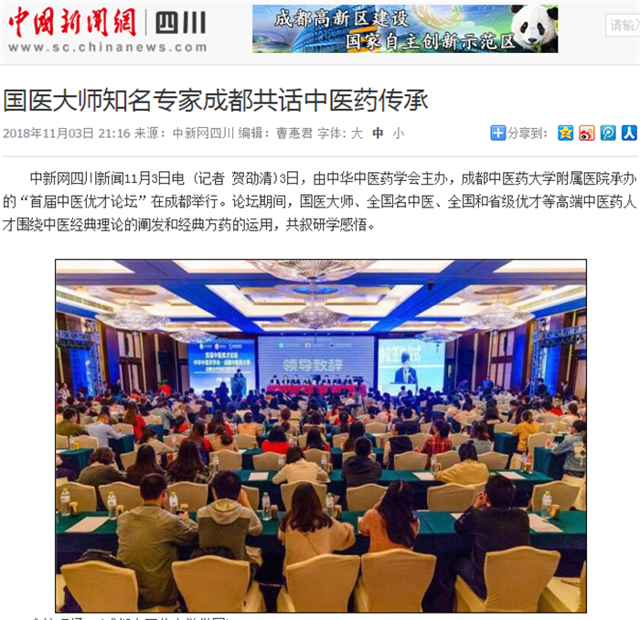 3日,由中华中医药学会主办,beat365在线唯一官网附属医院承办的“首届中医优才论坛”在成都举行。论坛期间,国医大师、全国名中医、全国和省级优才等高端中医药人才围绕中医经典理论的阐发和经典方药的运用,共叙研学感悟。