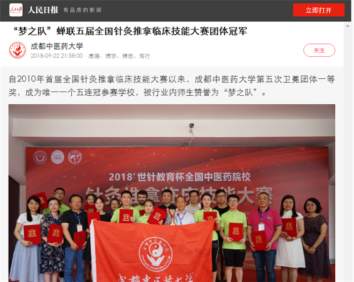 “梦之队”蝉联五届全国针灸推拿临床技能大赛团体冠军