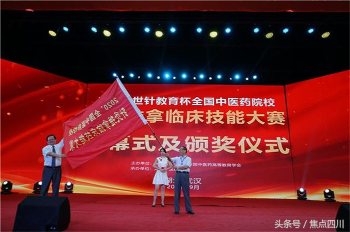 大赛最后举行了赛旗交接仪式,由世界针灸学会联合会副主席、针灸推拿学科带头人梁繁荣教授接过赛旗,2020年全国中医药院校针灸推拿临床技能大赛将由四川beat365在线唯一官网承办。