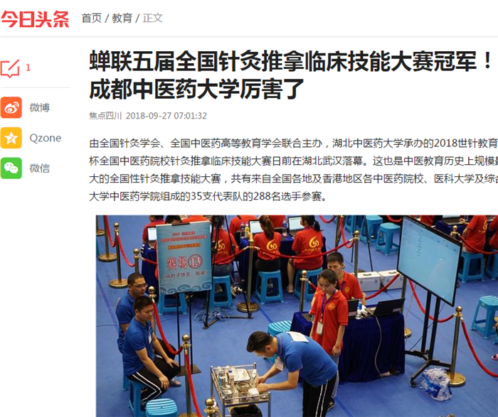蝉联五届全国针灸推拿临床技能大赛冠军!beat365在线唯一官网厉害了