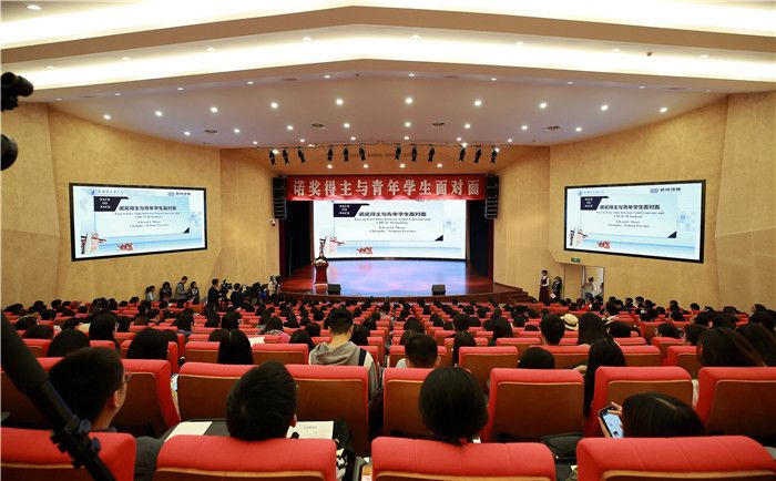 随后,校领导余曙光、杨静,教师代表、研究生与本科学生代表等近500人在现场听取报告。爱德华.莫泽教授的研究领域是大脑科学和人工智能,他为师生展示了自己团队的研究成果,报告现场通过校园网络向场外师生进行同步直播。