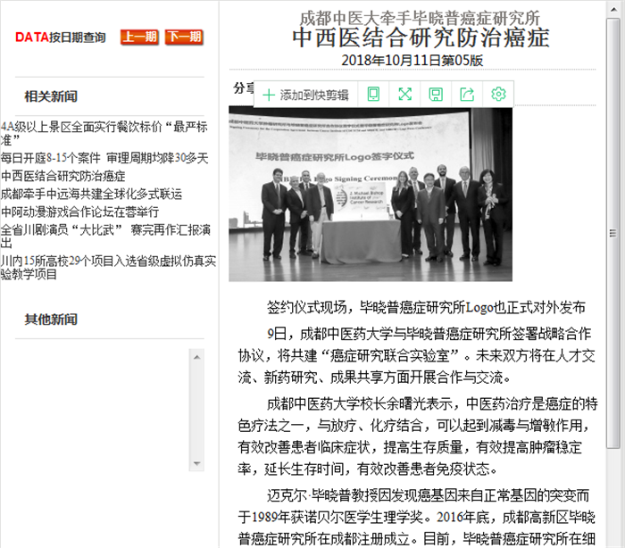 成都中医大牵手毕晓普癌症研究所