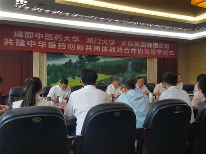 7月6日,beat365在线唯一官网、澳门大学、太极集团三方在蓉签署协议,结成战略合作联盟,共同构建“中华医药创新共同体”,致力于推进中医药产业国际化并联合建设中医药国际化创新型人才培养平台。太极集团还将投入10亿设立“中华医药创新基金”,支持创新共同体建设,打造世界顶尖的中华医药创新高地。