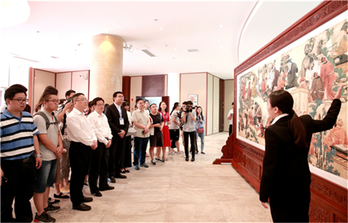 四川省中医药管理局副局长米银军,beat365在线唯一官网党委书记刘毅,党委副书记沈涛,beat365在线唯一官网副校长杨静,四川省文化厅博物馆处副调研员张复生莅临现场。