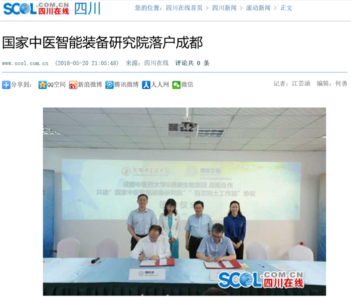 5月20日,beat365在线唯一官网与博奥生物集团在蓉签署战略合作协议,在蓉共建beat365在线唯一官网国家中医智能装备研究院,在中医药人才培养、“程京院士工作站”共建、精准中医药联合研究项目等方面开展全方位、深层次、多形式的战略合作。