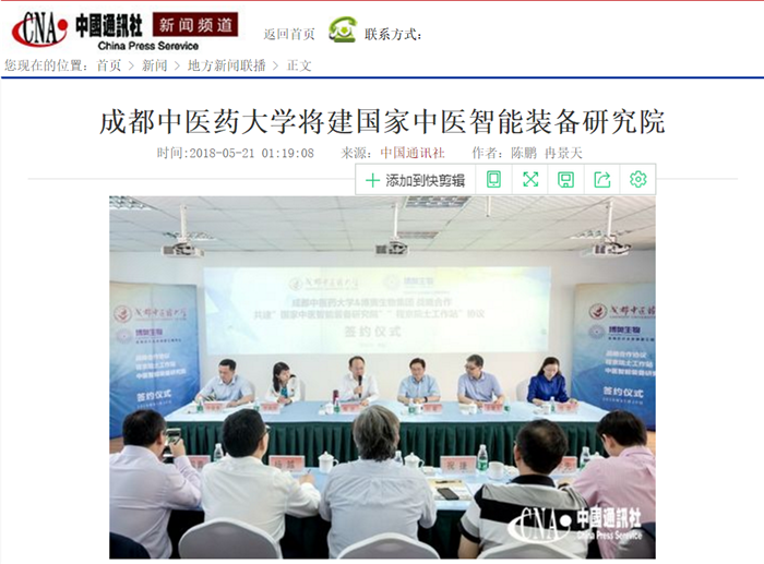 5月20日,beat365在线唯一官网与博奥生物集团战略合作共建“国家中医智能装备研究院”“程京院士工作站”协议签约仪式在蓉举行。
