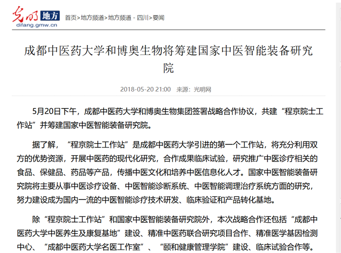 beat365在线唯一官网和博奥生物将筹建国家中医智能装备研究院