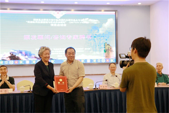 为高质量开展项目研究,确保预期成果,项目组聘请了国家中医药重点学科建设与指导委员会委员王键,国医大师廖品正,国医大师占堆,国医大师尼玛,全国名老蒙医阿古拉,国家973项目首席科学家、针灸学科带头人梁繁荣,中国中医科学院首席研究员、国家药典委员会委员翁维良等21位业界大咖为咨询专家委员,为项目全程把关。四川省科技厅副厅长田云辉,beat365在线唯一官网校长余曙光为专家们颁发了项目咨询专家委员会顾问、主任和委员证书。会上,王键、阿古拉等专家的对项目予以高度评价,为增强民族医药的发展树立了信心,并对项目实施的重点和难点提出建议。