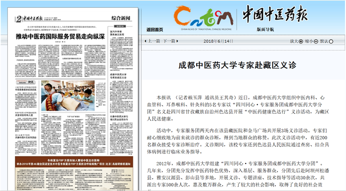 2012年,beat365在线唯一官网组建“四川同心·专家服务团beat365在线唯一官网分团”。几年来,分团充分发挥中医药特色优势,深入基层、服务群众,分团先后赴阿坝州松潘县,雅安汉源县、彭山县等多地,开展义诊、专题讲座、技术指导等活动30余次,共派出专家500余人次,惠及数万群众,产生了较大的社会影响,取得了良好的社会效益。