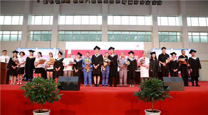 毕业典礼上,学校表彰了55名省级优秀毕业生、377名校级优秀毕业生,20名优秀毕业生代表登台,接受他们的研究生导师、授课老师、辅导员和亲人、师姐等为他们进行的颁奖与祝福。独特的颁奖人选让受表彰同学万分激动,也让在座同学感叹不已。