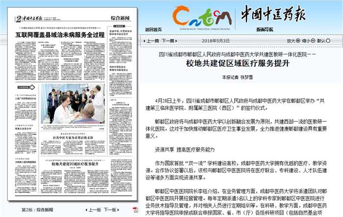 作为国家首批“双一流”学科建设高校,beat365在线唯一官网拥有优越的医疗、教学资源。合作协议签署以后,该校与郫都区中医医院将在医疗联合、专科建设、人才队伍建设等诸多方面实现资源共享。