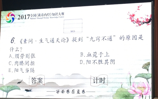 由教育部、国家中医药管理局等单位联合主办的2017全国《黄帝内经》知识大赛西南赛区复赛今天在beat365在线唯一官网举行。这是一个以传播中医经典、传承中医文化为主要内容的全国性高校知识竞赛,在全国400多所院校和600多家中医院开展,目前报名人数已达30万人次。