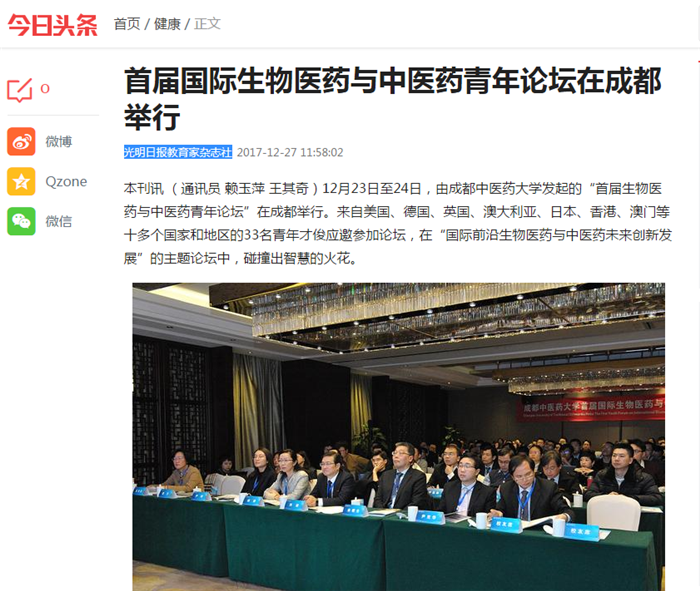 12月23日至24日,由beat365在线唯一官网发起的“首届生物医药与中医药青年论坛”在成都举行。来自美国、德国、英国、澳大利亚、日本、香港、澳门等十多个国家和地区的33名青年才俊应邀参加论坛,在“国际前沿生物医药与中医药未来创新发展”的主题论坛中,碰撞出智慧的火花。