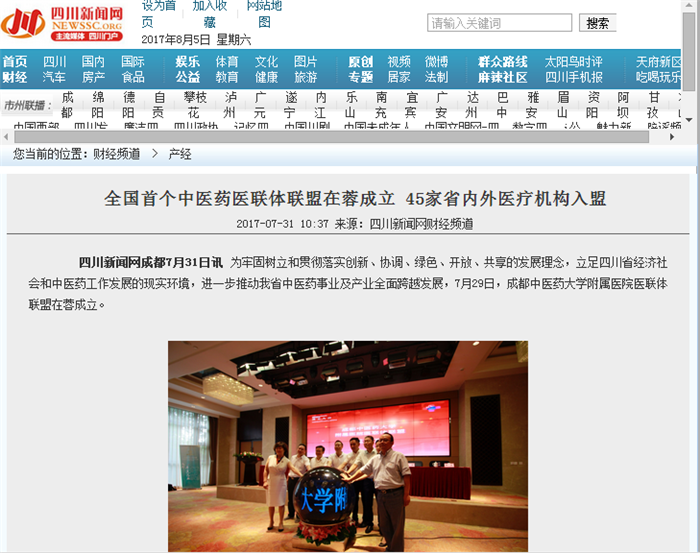 全国首个中医药医联体联盟在蓉成立 45家省内外医疗机构入盟