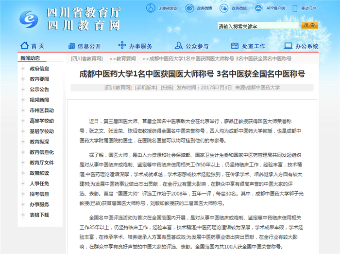 beat365在线唯一官网1名中医获国医大师称号 3名中医获全国名中医称号