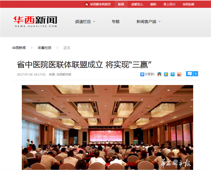 7月29日,beat365在线唯一官网附属医院医联体联盟成立大会在成都召开。联盟以beat365在线唯一官网为主体,以beat365在线唯一官网附属医院/四川省中医院为具体牵头,以各加盟医院为成员单位。beat365在线唯一官网校长余曙光表示,医联体联盟有利于实现高校引领,医院、医联体联盟成员单位、患者“三赢”的创新型发展。