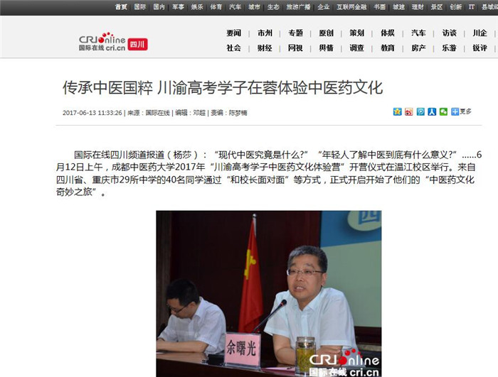 国际在线四川频道报道(杨莎):“现代中医究竟是什么?”“年轻人了解中医到底有什么意义?”……6月12日上午,beat365在线唯一官网2017年“川渝高考学子中医药文化体验营”开营仪式在温江校区举行。来自四川省、重庆市29所中学的40名同学通过“和校长面对面”等方式,正式开启开始了他们的“中医药文化奇妙之旅”。